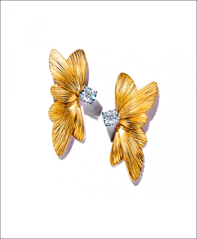 全新「Tiffany Jewel Box高級珠寶系列」完全展現了Tiffany對各種彩色寶石特色的純熟掌握,以及在寶石切割方式精益求精的突破精神,才能在多次以大自然為主題之後,仍帶來嶄新的驚喜。全系列共有8大主題,「Flight」主題巧妙呈現質地與形狀的對比,18K金蝴蝶項鍊鑲嵌總重超過28克拉的公主式切割鑽石,鑽石絢麗的光芒與金色紋理的蝴蝶翅膀形成鮮明對比;「Icons」主題重新詮釋Tiffany經典的心形和星形,以方形切割、碎冰形切割的鑽石,搭配不對稱的心形和星形圖案,為經典元素賦予現代摩登樣貌。