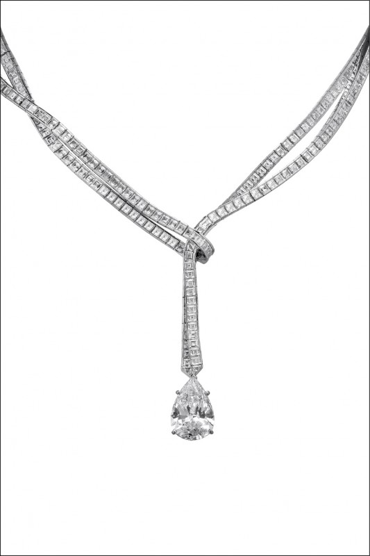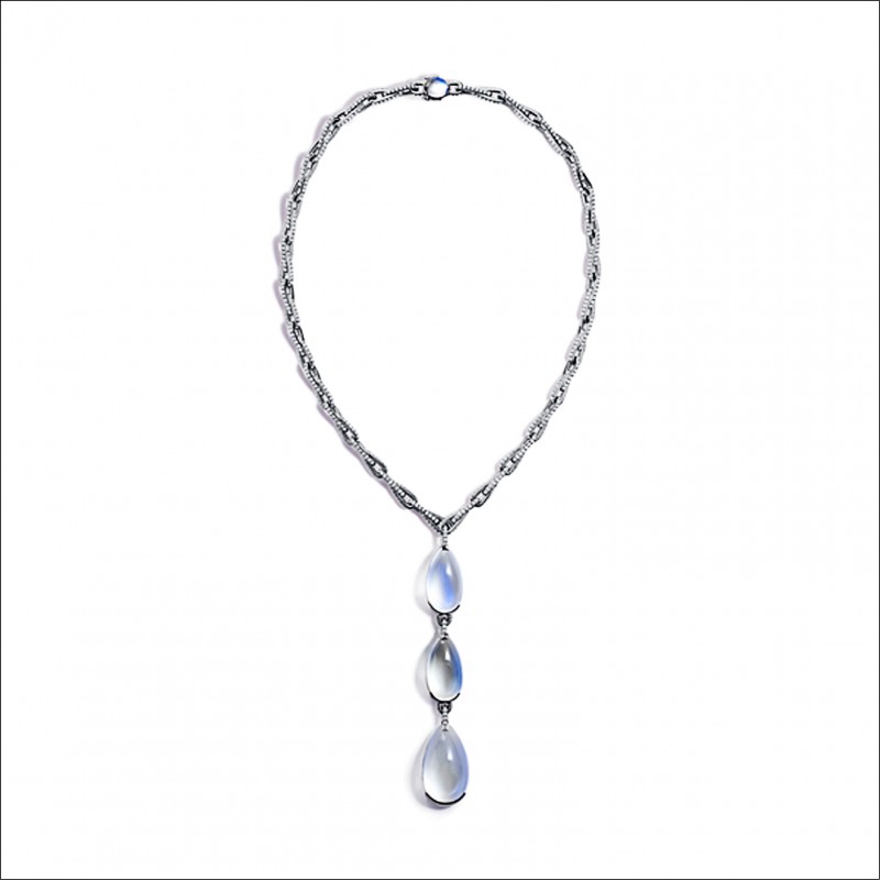 「Ribbon」主題完全展現金工技藝,工匠以特殊的鉸接技術讓堅硬的金屬呈現如絲緞一般的飄逸、柔軟質感,將鑽石緞帶纏繞於頸肩、手腕或耳際,隨著身體擺動,散發靈動的光芒;「Mosaic」主題的靈感來自馬賽克圖案,以不對稱、交叉排列方式,讓作品顯得活潑動感,月光石吊墜項鍊的鍊身以重複的弧線交錯而成,搭配圓弧的月光石吊墜,完美和諧。